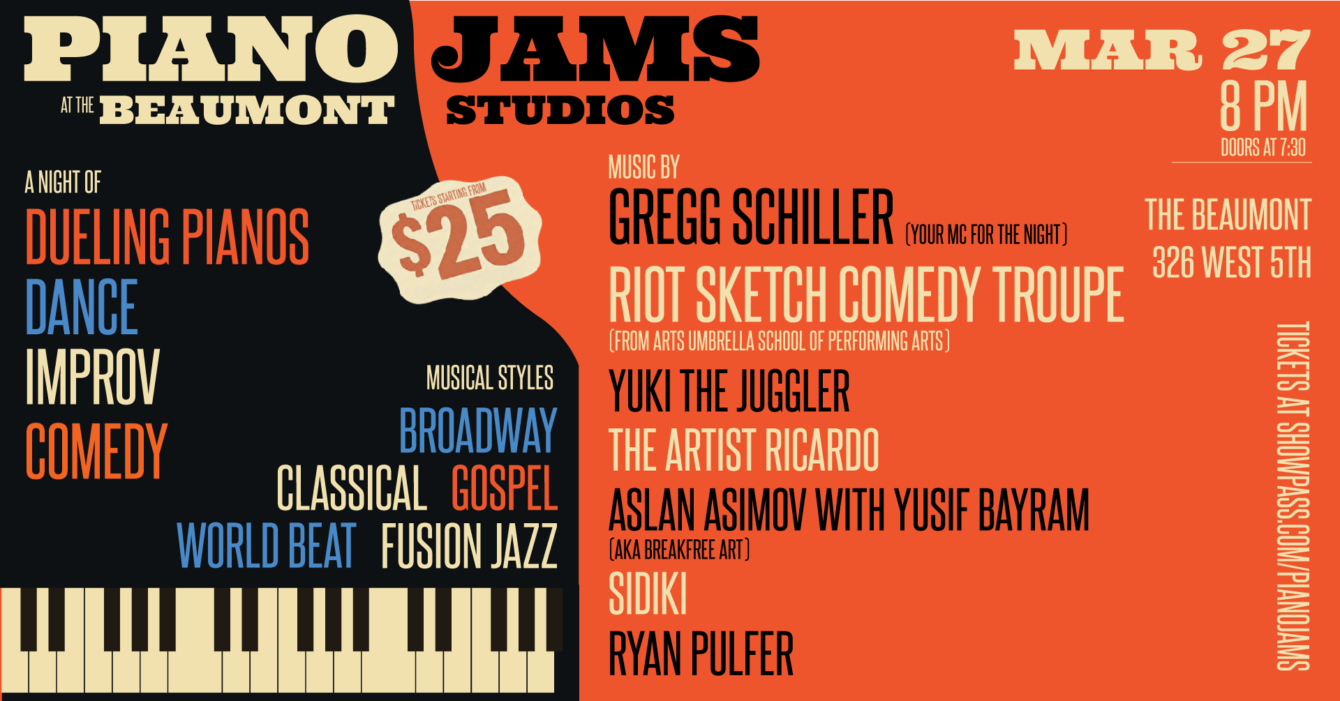 FeaturedThe Beaumont Studios 326 West 5th Ave, Vancouver, BC, CanadaPiano Jams launches a brand-new series at The Beaumont—an electrifying blend of dueling pianos, contemporary dance, improvisation, classical showmanship, and spontaneous musical chaos. Curated by host Gregg Schiller, the evening brings together some of Vancouver’s most exciting pianists and performers across fusion jazz, classical, Broadway, Worldbeat and Gospel. Gregg’s comedic persona guides the audience through […]